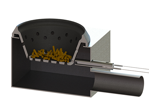 The ceramic hot surface igniter are installed inside a metal housing which directs the heat towards the pellets in the burner grate. This creates heat with no direct igniter contact meaning the igniter last much longer and ignite instantly. No need to wait to get a flame, you can start to cook immediatly so it is much confortable for end users.
